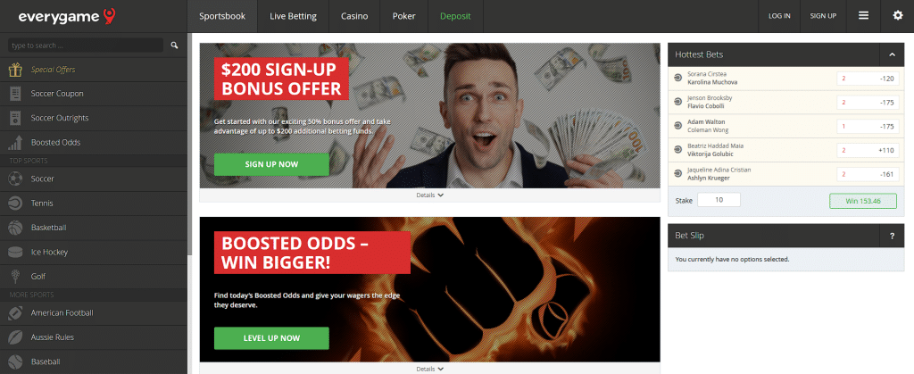 Everygame is one of the longest-standing soccer betting sites, with strong international reach and flexible payment methods. Bettors can wager on everything from the English Premier League to South American competitions, with consistent odds and frequent seasonal promos.