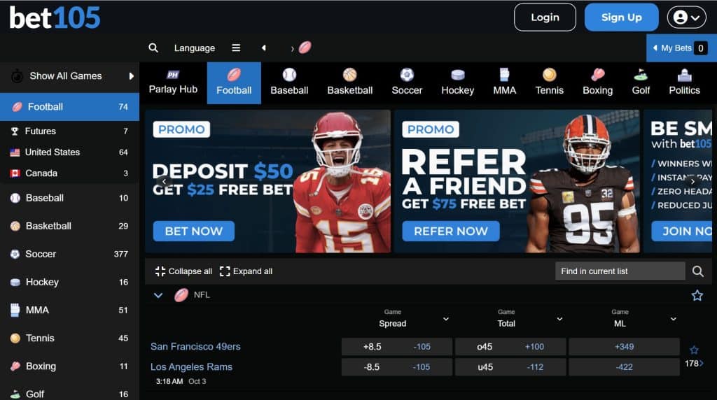 - Bet105 – Straightforward betting site with competitive soccer odds and no-frills design.